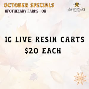 *OCTOBER SPECIALS 1G LIVE RESIN CARTS $20*